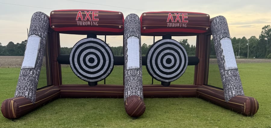 Make your next celebration unforgettable with inflatables Double Lane Axe Throwing in Fayetteville. Whether you're hosting a community event, school carnival, or private party, this interactive game is guaranteed to be a hit. Reserve now and let the friendly competition begin!