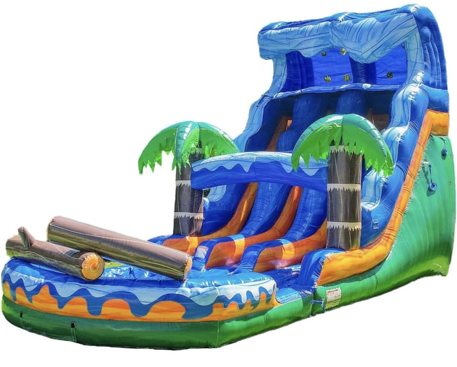 Turn any event into a wild party with the 17ft Jungle Falls DL. 🌴🐒 This jungle-themed, double-lane water slide delivers big thrills for kids and adults. 💦 Bright graphics, twin lanes, and a towering 17-foot drop create fast, splashy fun. 🎉 Perfect for birthday parties, summer events, and backyard blowouts.