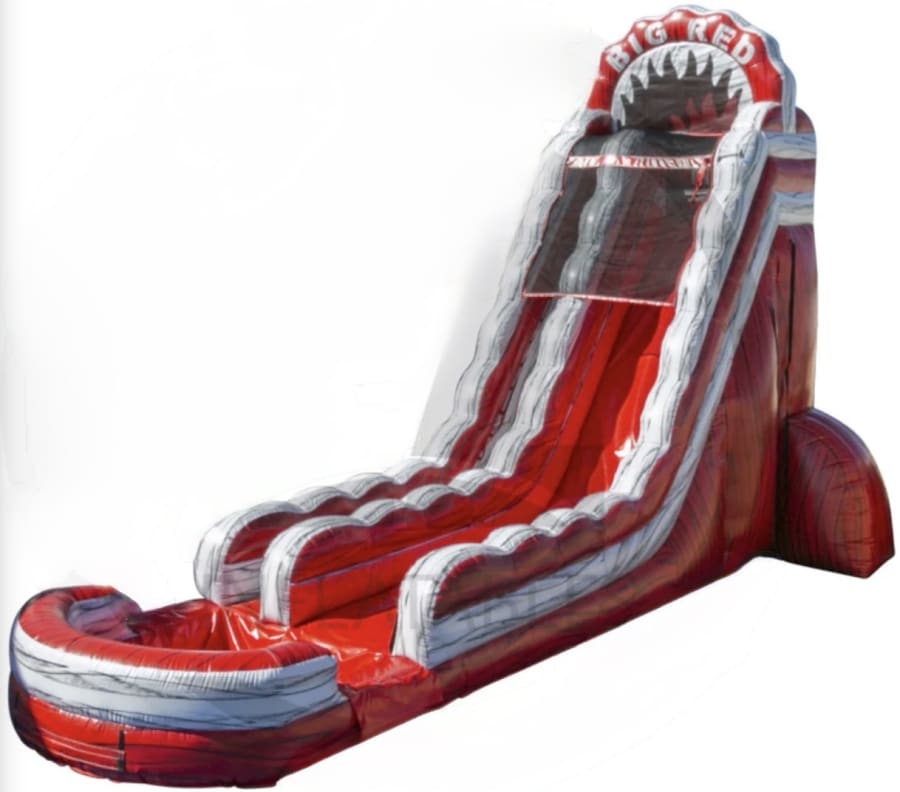 The 24ft BIG RED is a dramatic, high-energy single-lane waterslide. This red and gray marble colored slide stands 24 feet tall and finishes in a splash pool. It’s built for speed and excitement. Perfect for backyard parties, festivals, and summer events. Bookings: Friday drop off, Monday pick up. 💦🔥