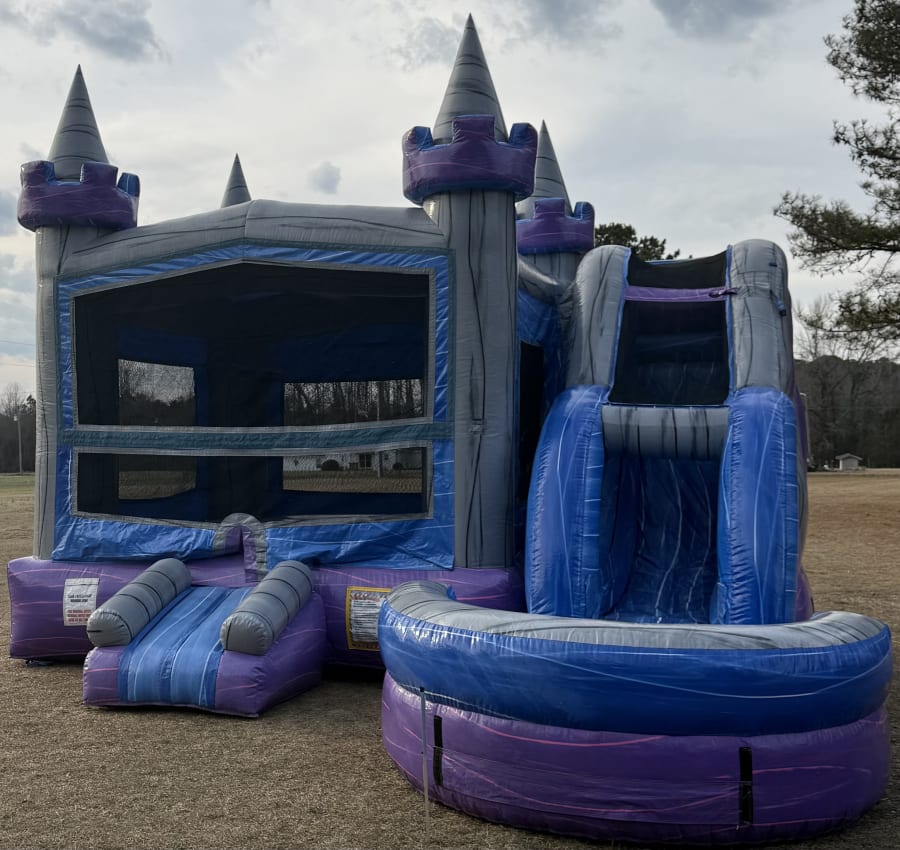 The Purple Reign Combo delivers vibrant purple and gray marble styling with a versatile wet-or-dry design. Perfect for backyard parties, community events, and summer fun. This inflatable combo merges a roomy bounce house with an exciting waterslide for nonstop action. Safe. Durable. Eye-catching. ๐๐