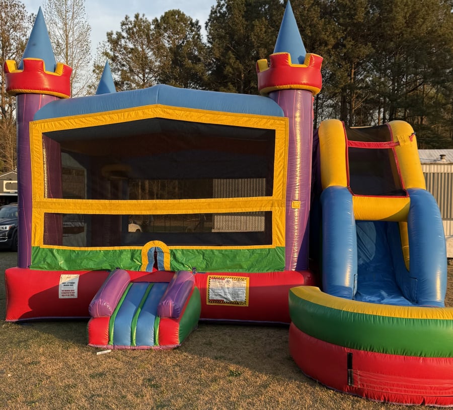 The Giggle Fortess is a colorful wet and wild inflatable built for nonstop fun. Choose wet or dry option for year-round play. Perfect for birthday parties, neighborhood events, and family weekends. Book for a Friday drop off and Monday pick up for a weekend full of giggles. ๐